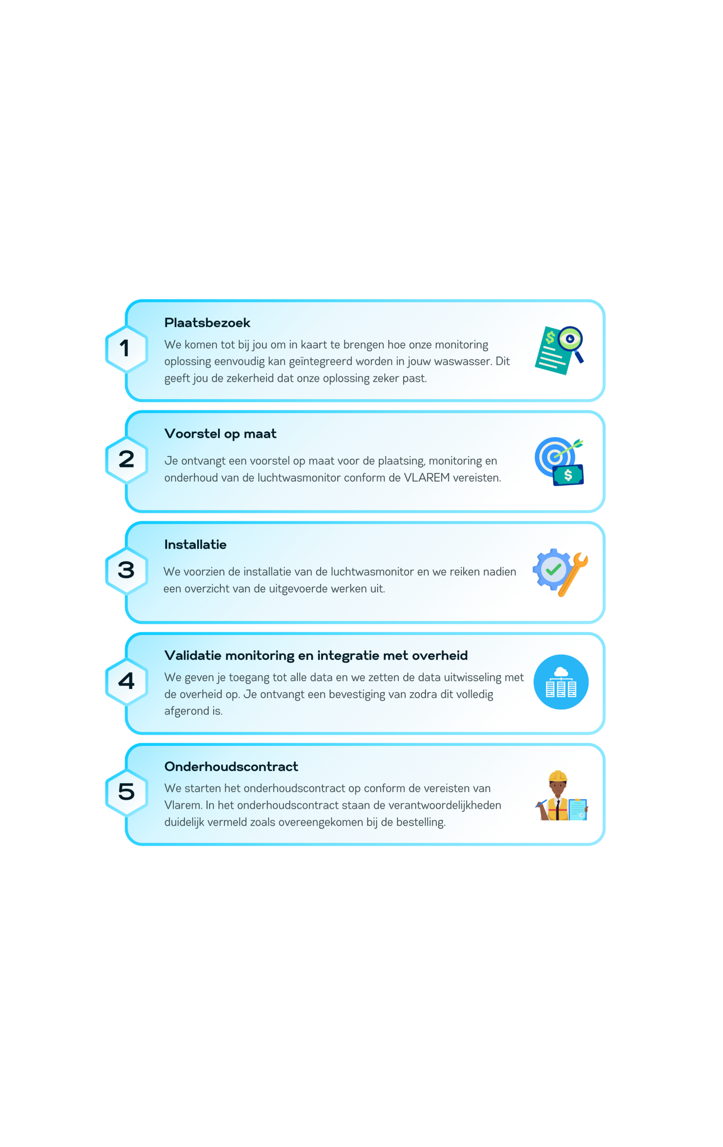 Sinds najaar 2023 vereist de VLAREM-wetgeving automatische elektronische monitoring voor luchtzuiveringssystemen (zoals luchtwassers en biobedden). Belangrijke parameters moeten continu geregistreerd worden. Bestaande systemen hebben tijd tot 31 december 2025 om te voldoen. Er is een VLIF-subsidie van 14.000 euro beschikbaar.Onze elektronische monitoring zorgt voor een continue en geautomatiseerde registratie van alle belangrijke parameters van luchtzuiveringssystemen en is conform de VLAREM wetgeving.✔ Realtime metingen van o.a. pH, geleidbaarheid, drukverschil, debiet en elektriciteitsverbruik
